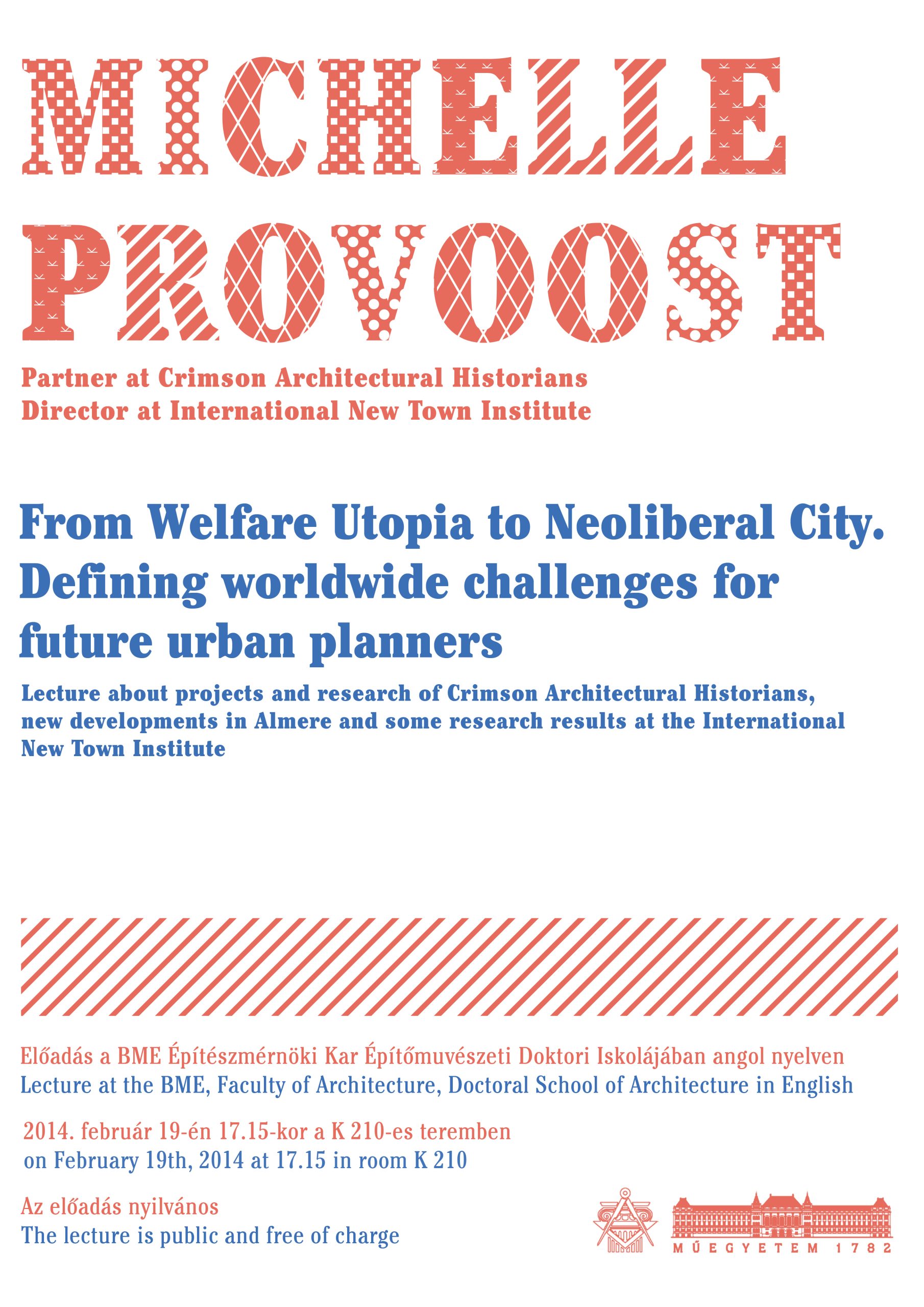 Michelle Provoost, a Crimson Architectural Historians partnere és az International New Town Institute vezetője előadást tart a Doktori Iskola keretében a Műegyetemen. Az előadás nyilvános és angol nyelvű. Minden érdeklődőt szeretettel várunk!